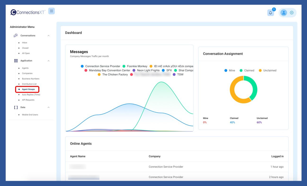 To get started either creating or editing an agent group, click on the Agents Group link under the Application section of the Administrator Menu.