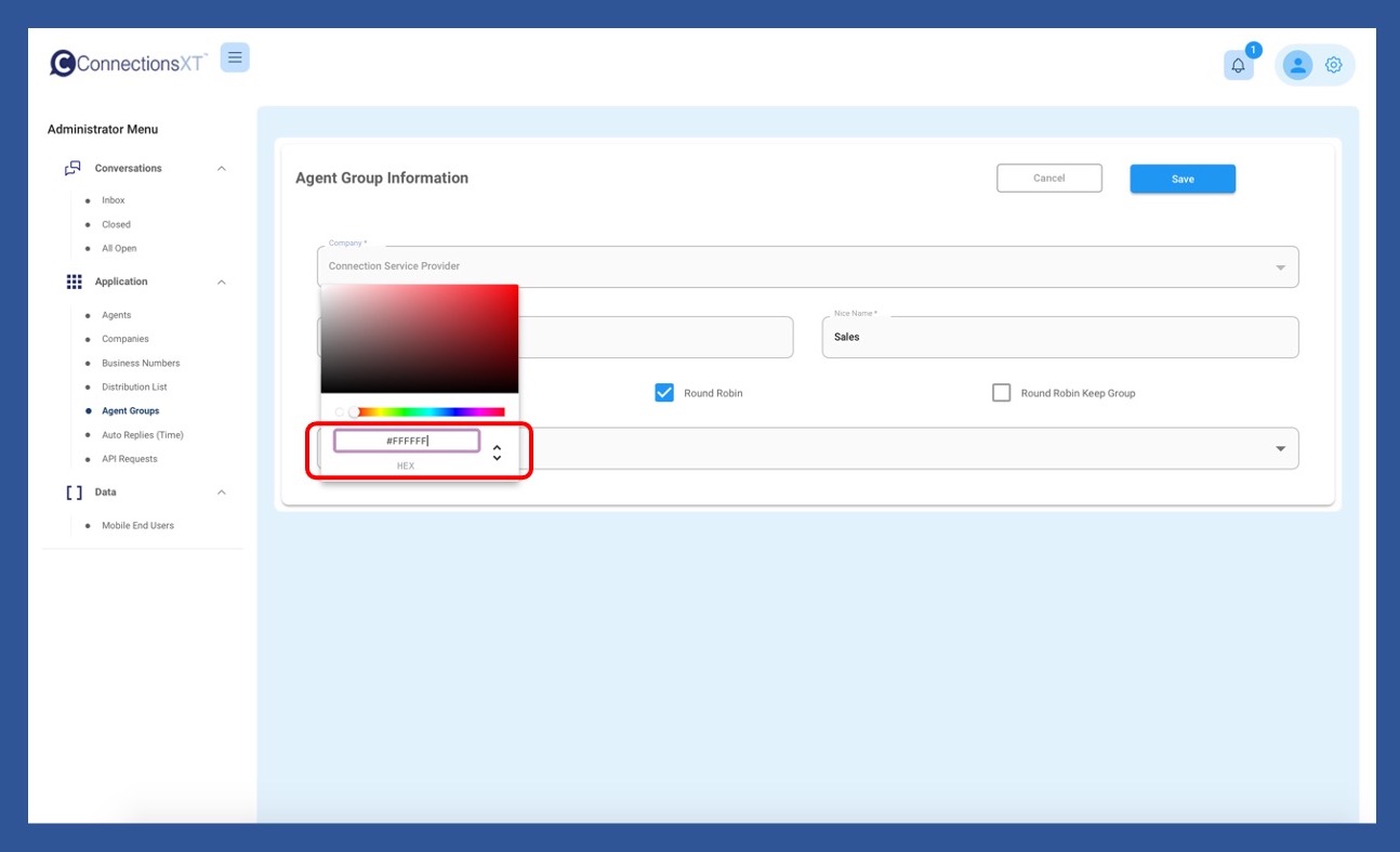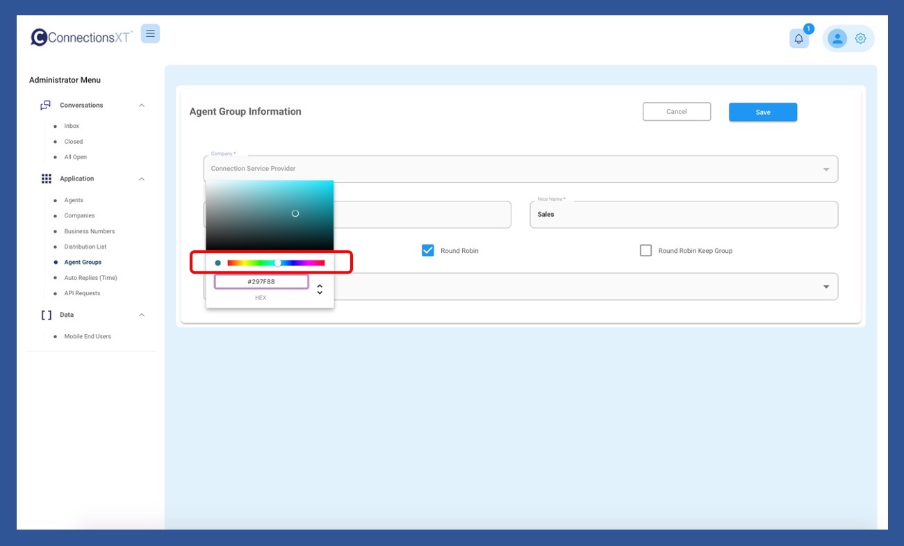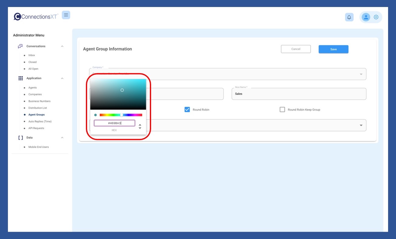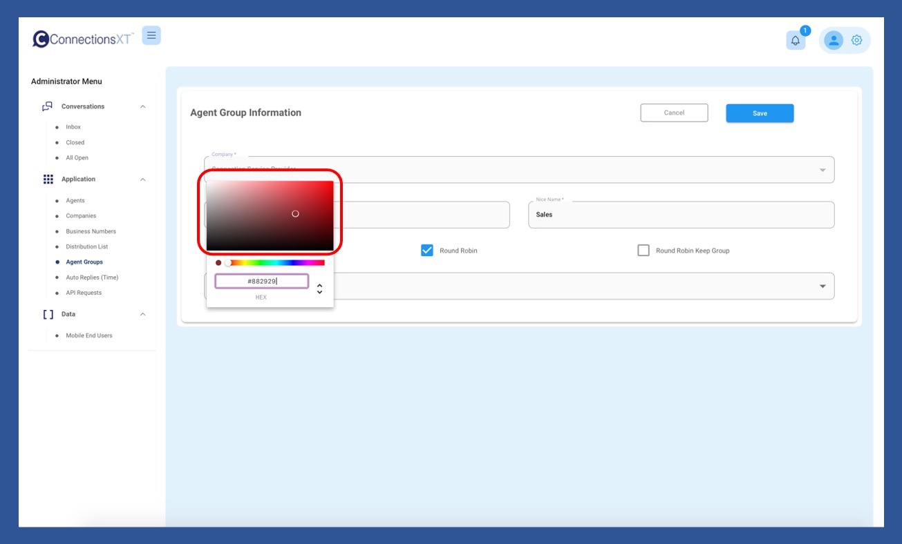 If you would like to assign a color to the agent group – or update an existing color - click the box next to Group Color to pull up the color picker.