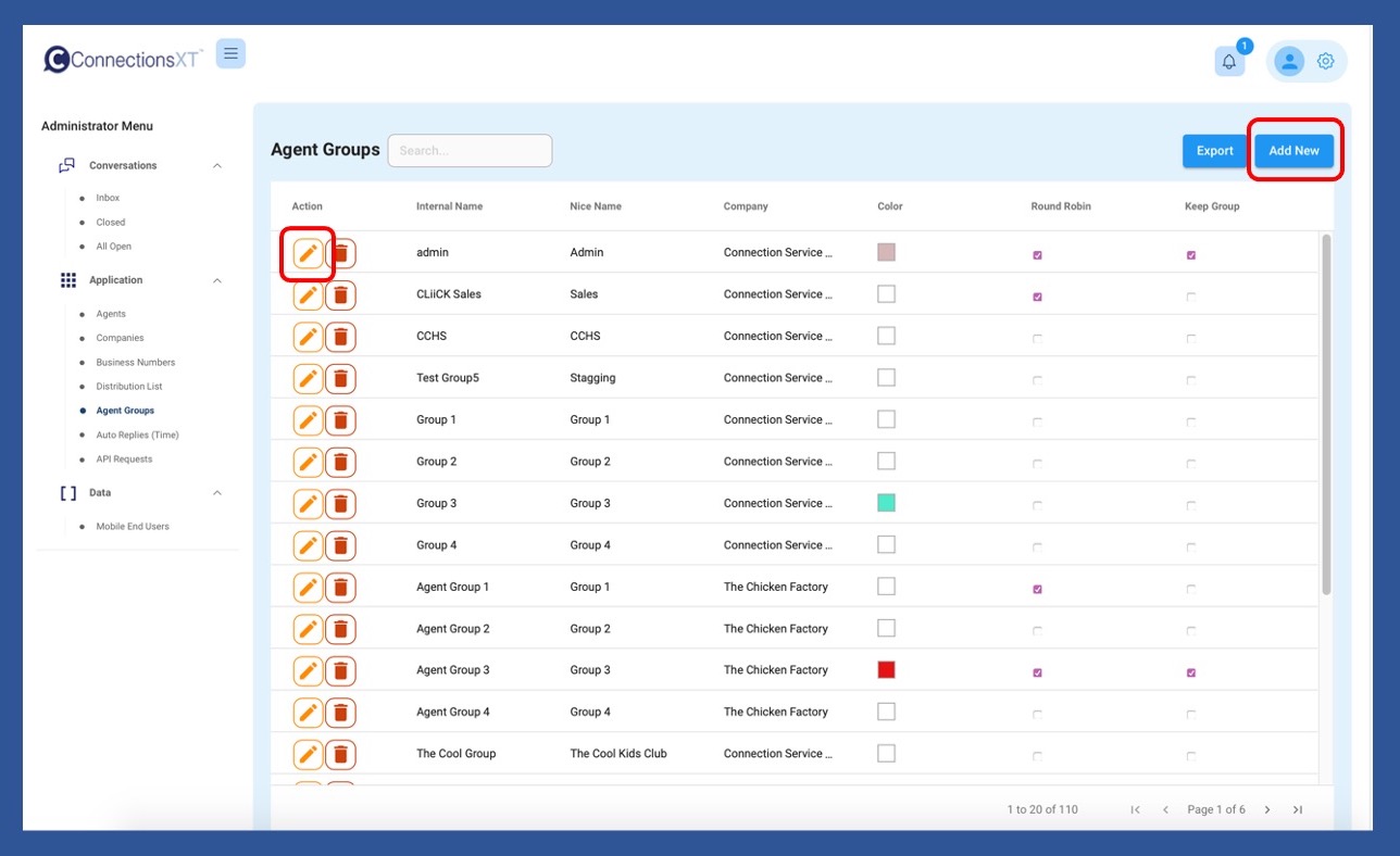 On the Agents Group page, click Add New to create a new agent group. To edit an existing Agent Group, click on the pencil icon to the left of the corresponding agent group.