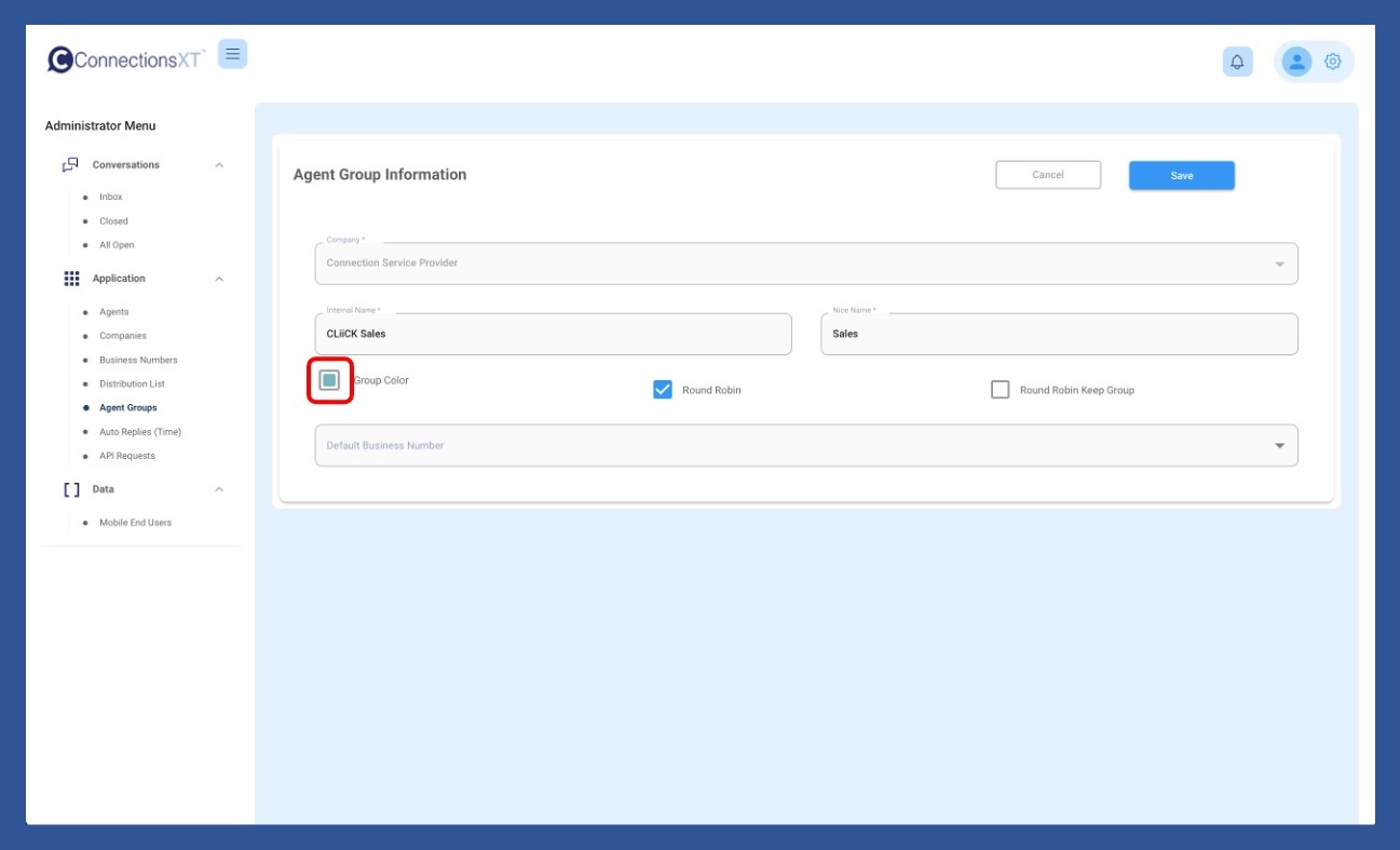 To remove an assigned Agent Group color, start by navigating to the Agent Group you want to remove the color from and then click on the colored-in box to the left of Group Color.