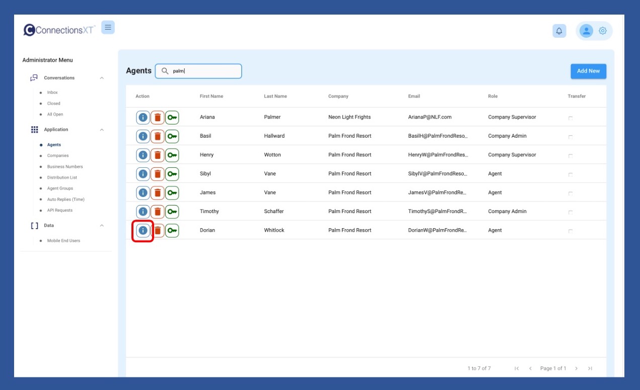 To add an Agent to an Agent Group, start by navigating to the Agents page. Then click on the info/profile icon next to the Agent you’d like to add to a group.