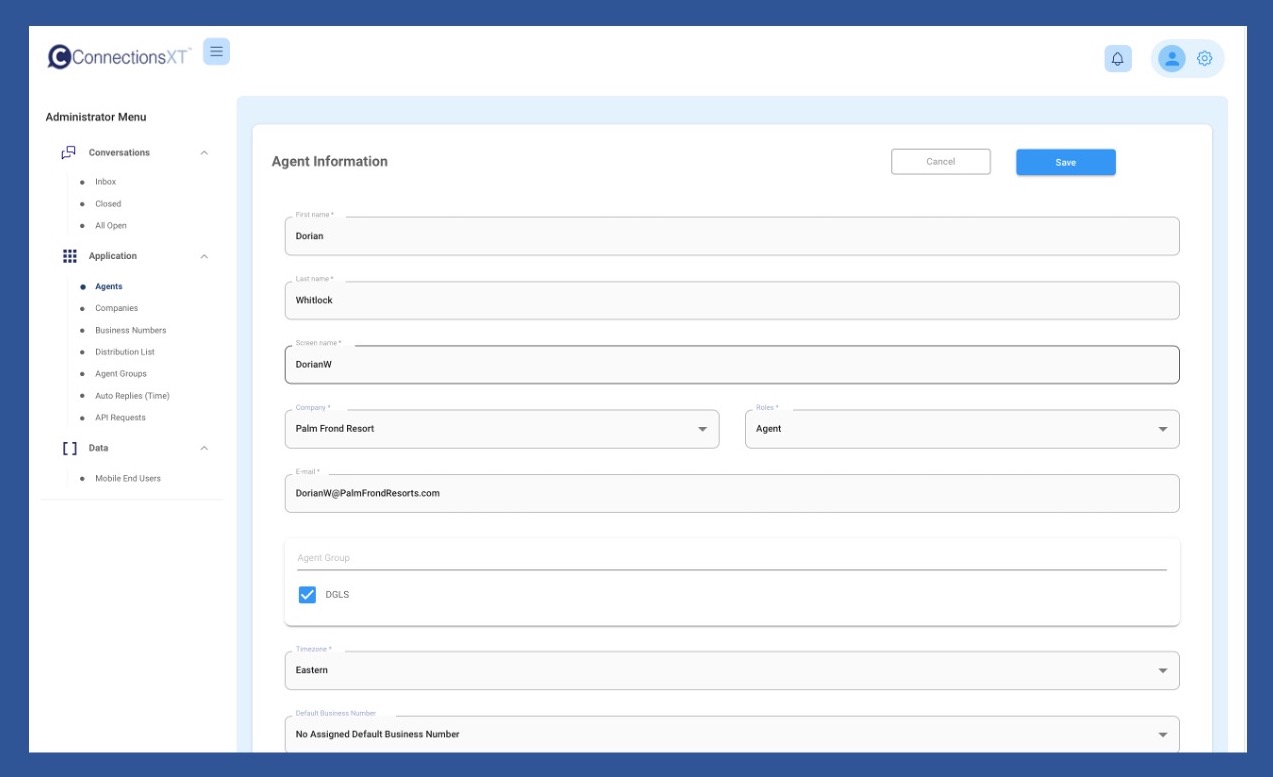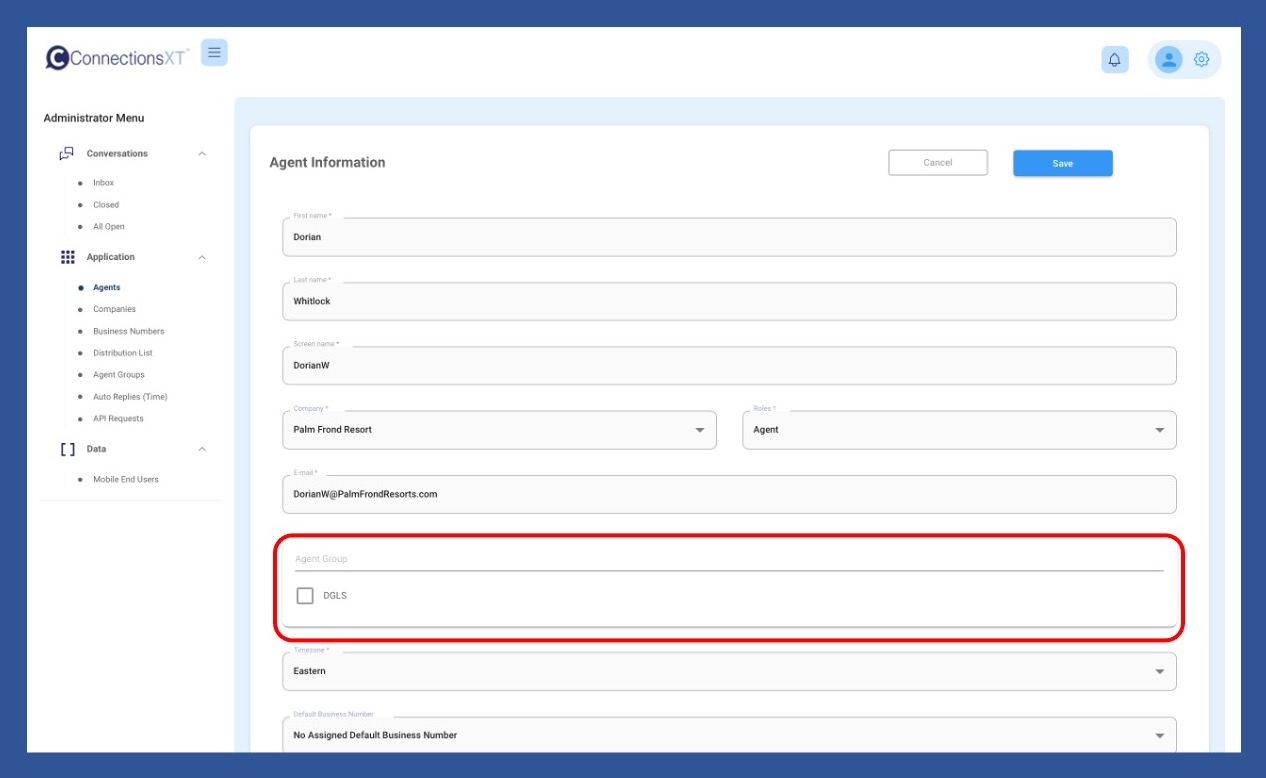 To set up a new Agent Group, on the Agent Group Information page enter the Company the agent group belongs to, the Internal Name (the name the company will call the agent group internally) and the Nice Name (the public group name).