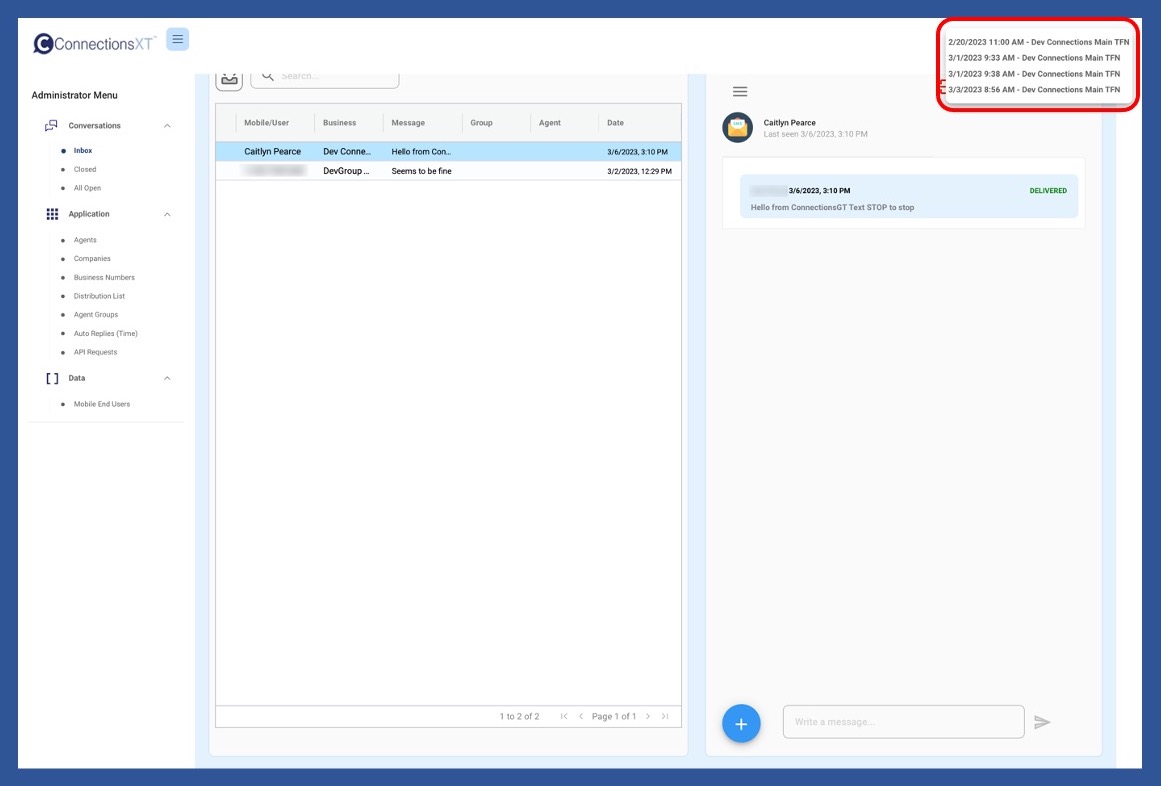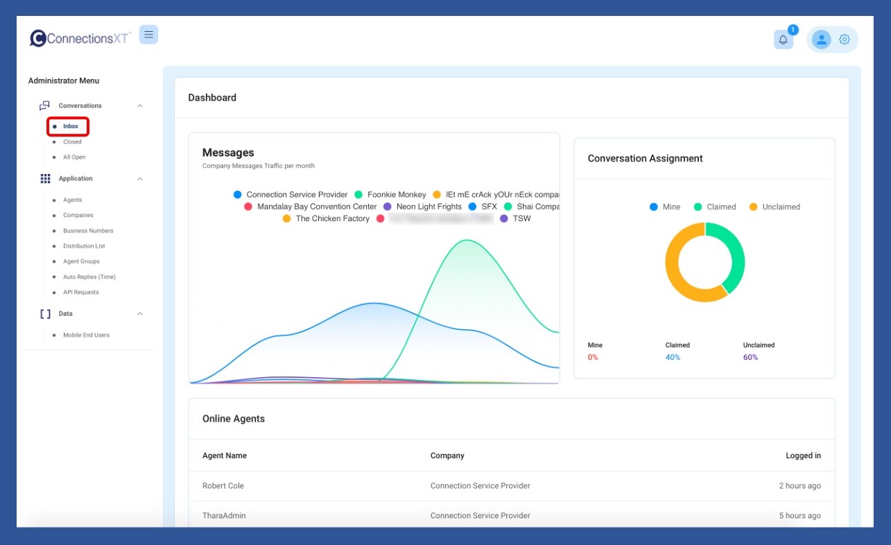 NOTE: While the screen shots show the Administrator menu, the process to claim a message is the same for Administrators, Supervisors, and Agents.