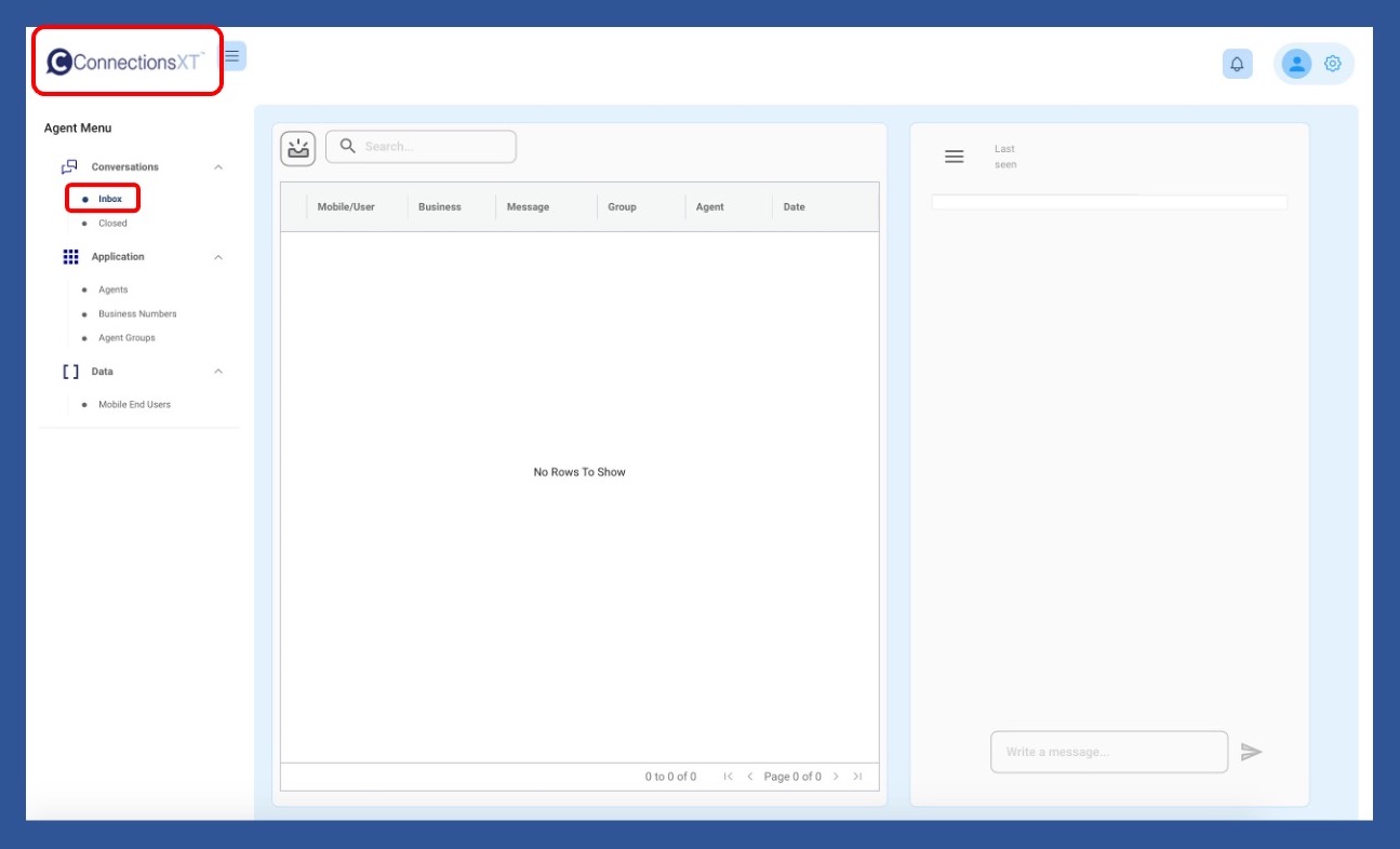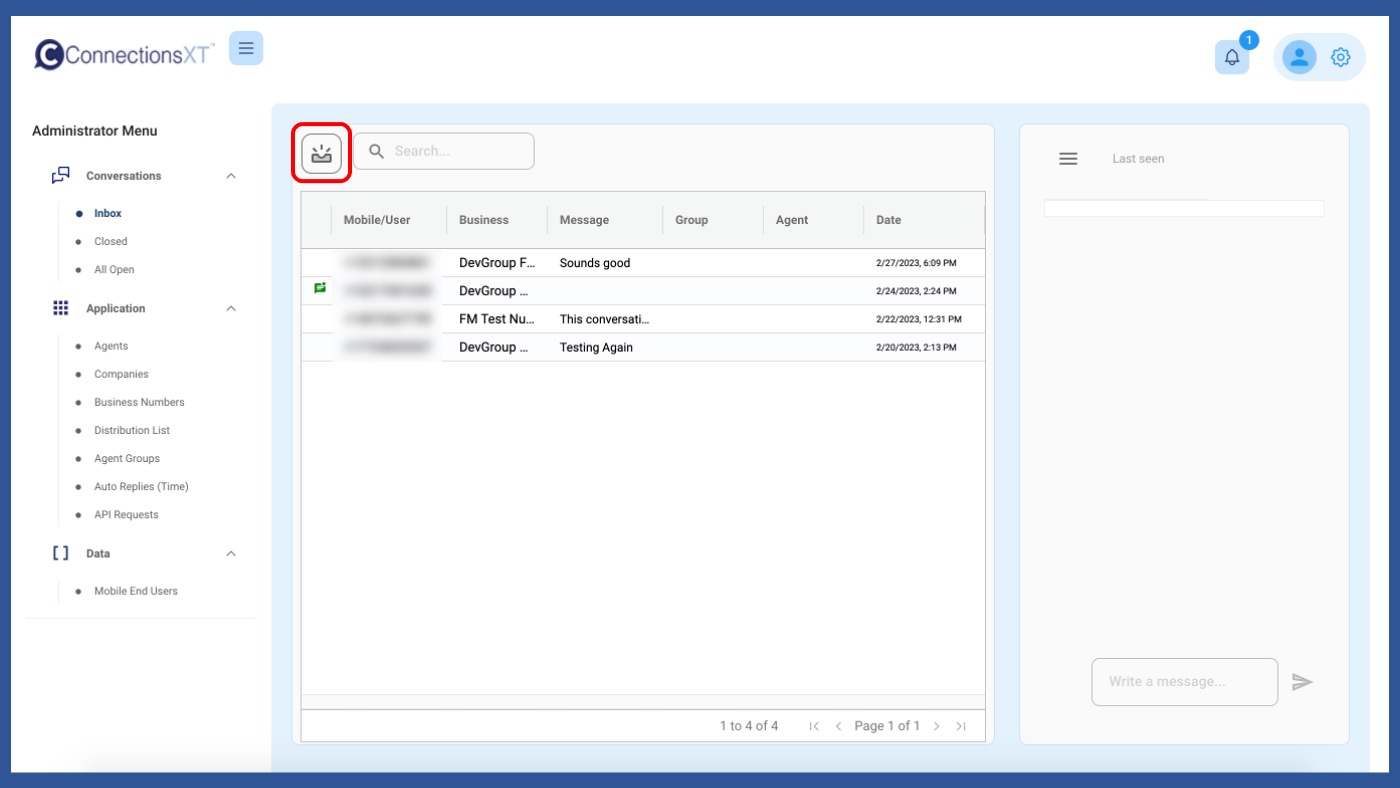 When you click on the red message icon, a list of closed conversations will appear. In this example, there is only one closed conversation.