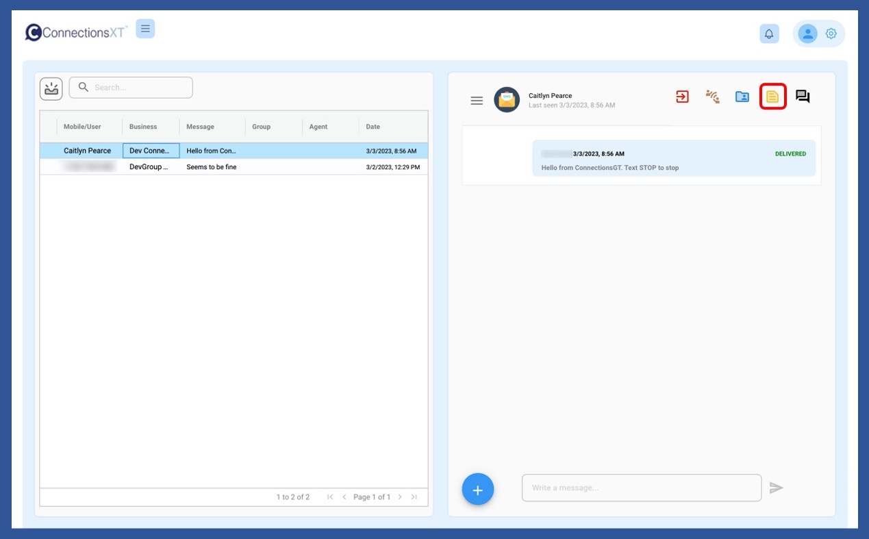 You can easily add notes to an open conversation. Start by navigating to the inbox and choosing the message you’d like to add a note to. Then click on the yellow Notes icon.