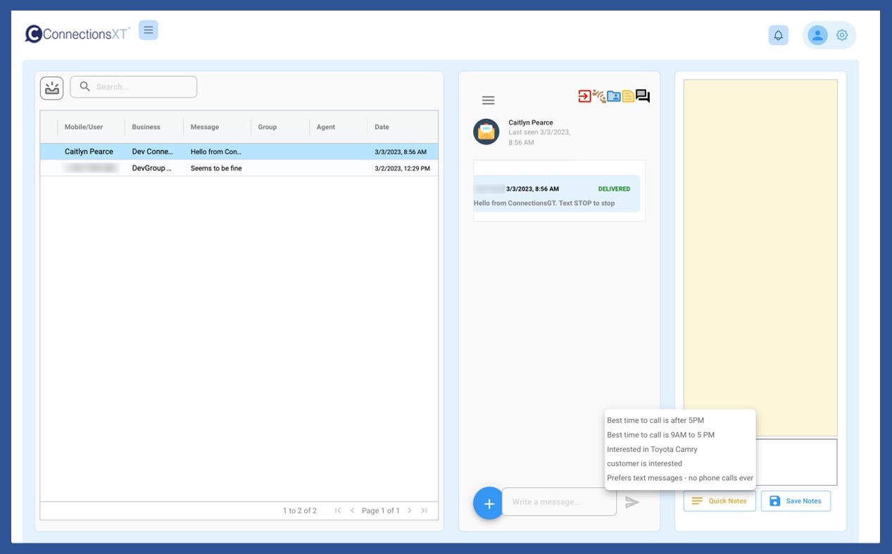 Any notes you enter will show in the conversation thread. They will be clearly marked as notes and will not be viewable by the mobile end user. They are intended for internal use only.