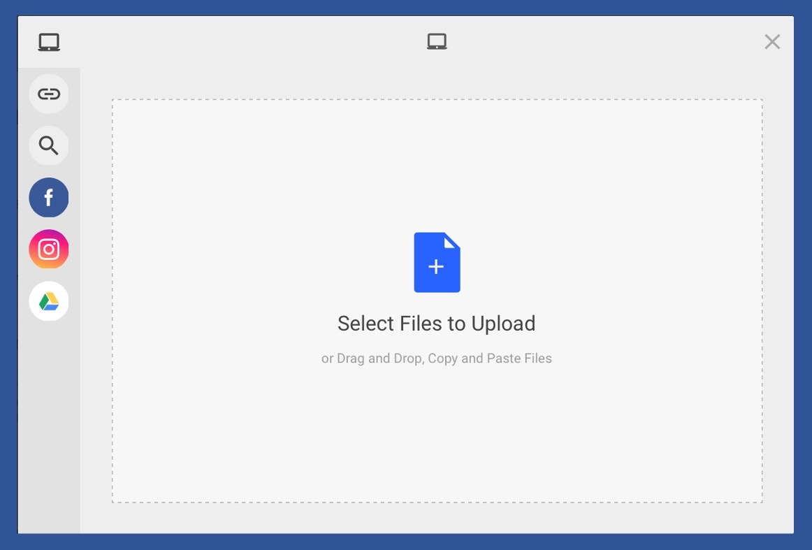 Once the popup box opens, choose where you’d like to pull the graphic from. You have several options to choose from: your computer or device, a link to an online image, a web search, Facebook, Instagram, or Google Drive.