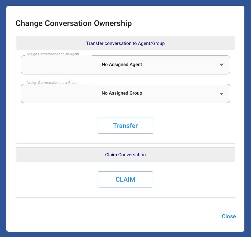 When the Change Conversation Ownership popup opens, you can do a number of things: