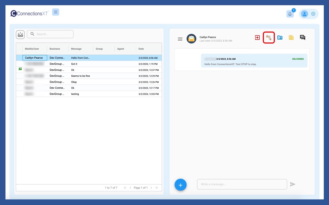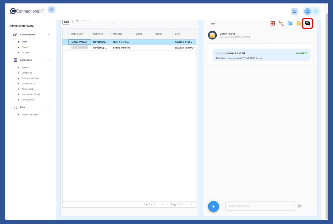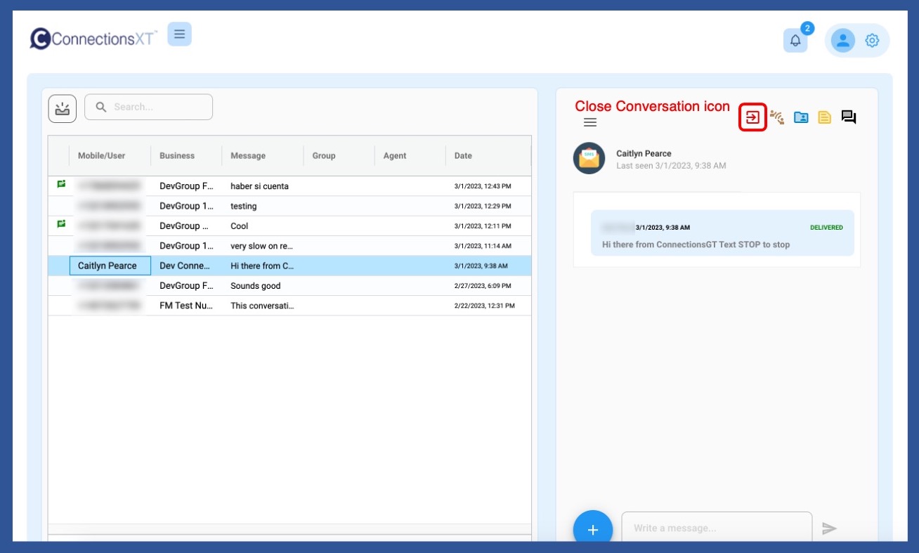 When the SMS section populates, click on the red Close Conversation icon at the top right.