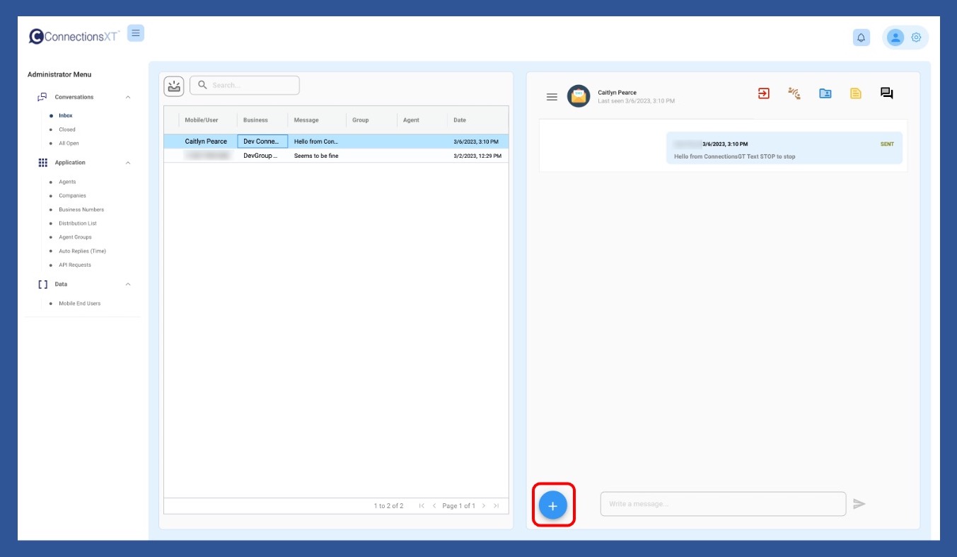 The second way is to click on the blue + plus icon at the bottom left of the SMS section.