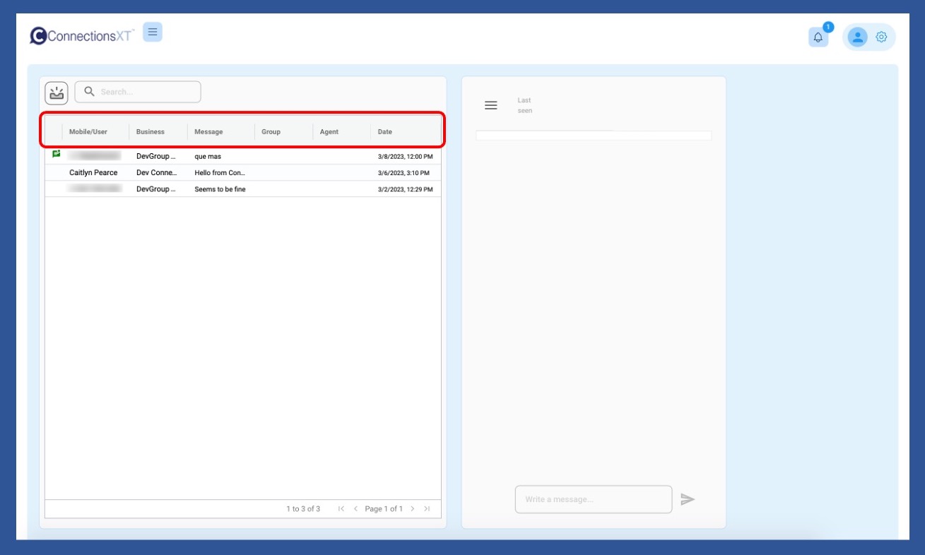 For example, if you want to sort by date, click on Date. If you want to sort by the mobile user, click on Mobile/User.