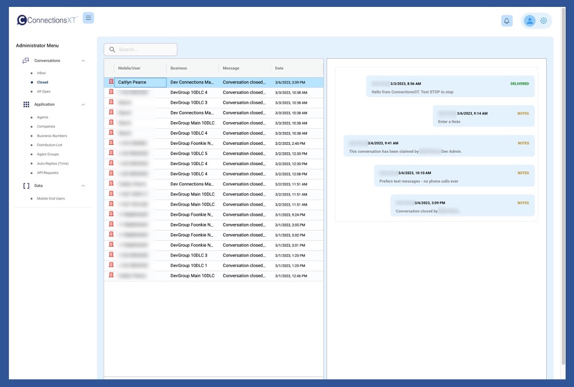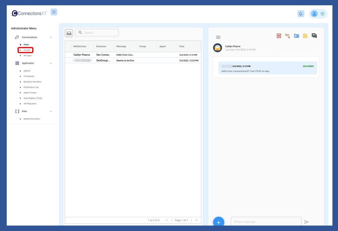 Closed conversations can be viewed by Administrators, Supervisors, or Agents.